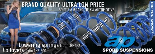 Tutte le sospensioni coilover AP combinano un abbassamento sportivo ed estremo personalizzato per un look extra cool con un piacere di guida senza compromessi e un'eccellente sensazione di guida. Per le massime prestazioni di guida!