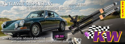 Per tutte le Porsche 911 dei primi anni del modello "Ur- e F-model" (1963-1973) e per tutte le versioni di motore, il produttore di sospensioni KW automotive ha nella sua gamma di prodotti un set di ammortizzatori KW V3 Classic con smorzamento in compressione ed estensione regolabile, compresi gli snodi di ste...